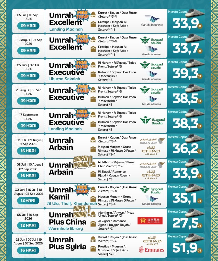 "Segera rencanakan perjalanan suci Anda bersama kami, dan nikmati ketenangan hati yang sepenuhnya terfokus pada ibadah."
